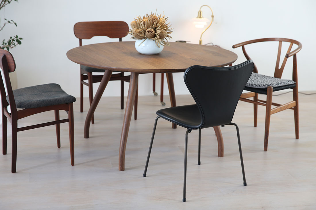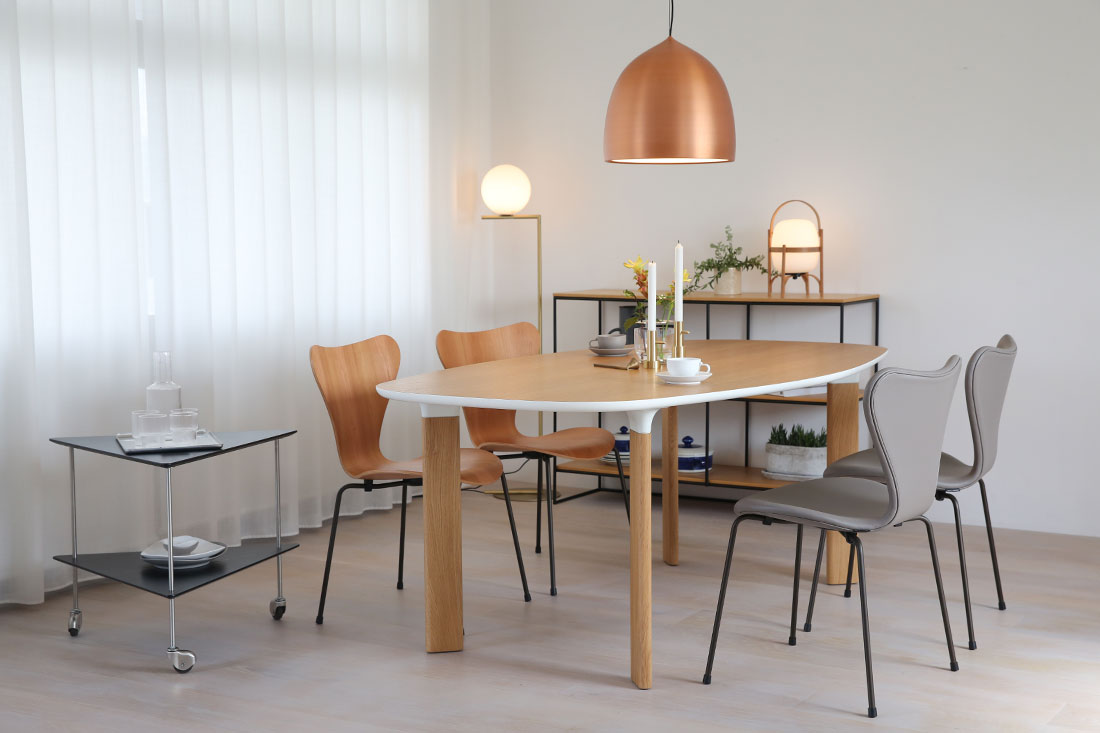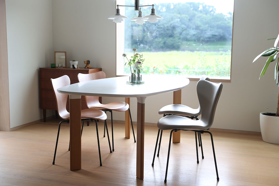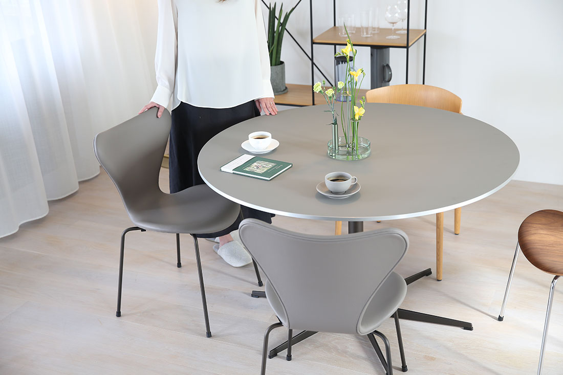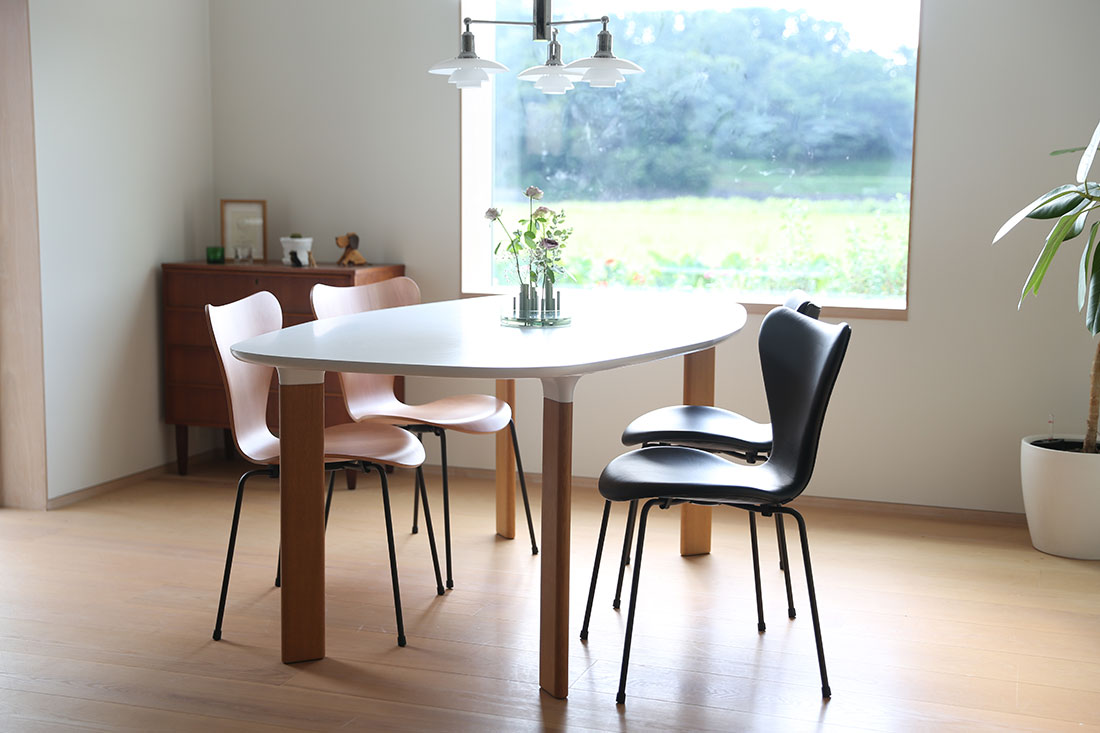 セブンチェアは、同じくフリッツ・ハンセンの「テーブルシリーズ」とも相性抜群です。