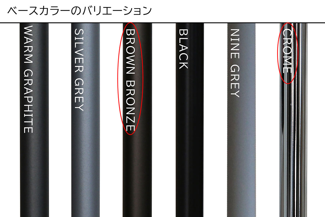 ブラウンブロンズは塗装されているため、クロームに比べると細かい傷がつきやすいですが、錆びたりする心配は少なく、汚れも目立ちにくいカラーなのでメンテナンスの楽さで言うとブラウンブロンズがおすすめです。