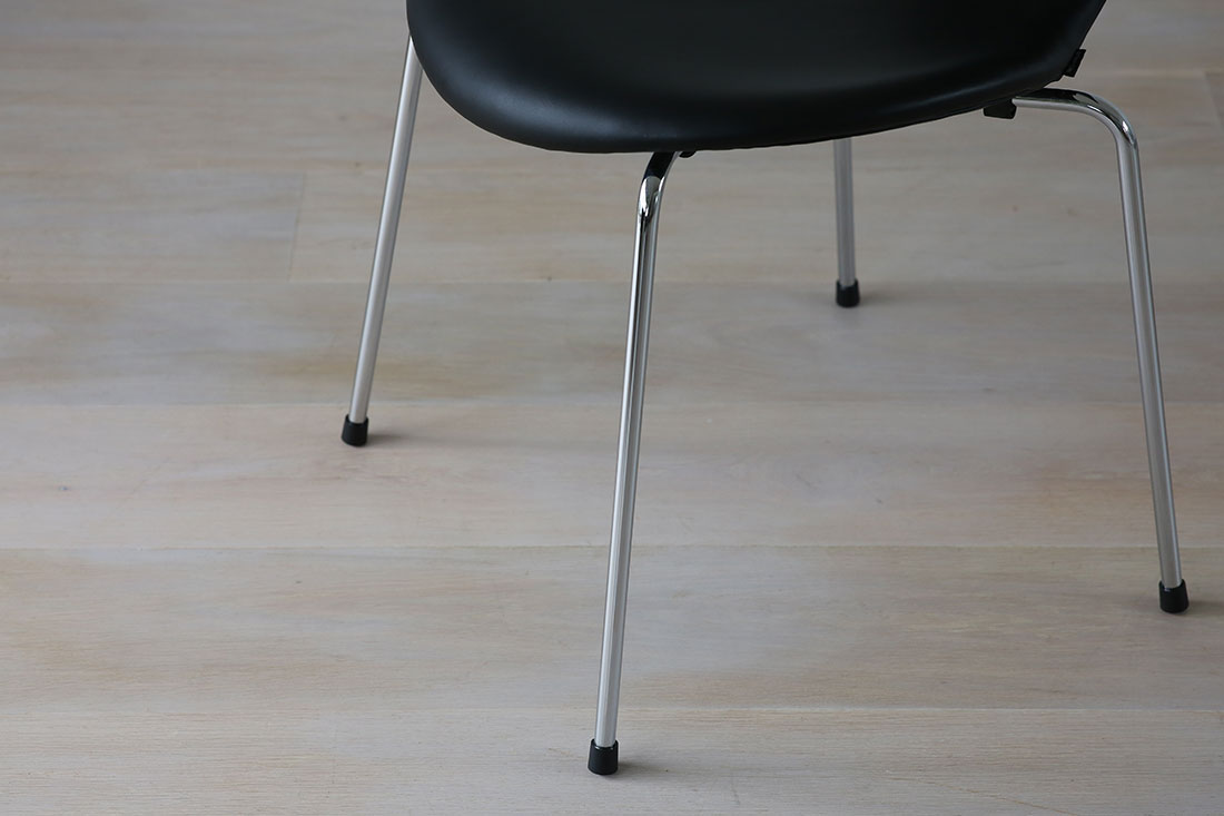 この塗装仕上げの脚は、マットな質感が特長です。光沢のあるクローム脚に比べ、木の質感に近く、お部屋に置いたときにより柔らかな温かい雰囲気を醸し出します。木の温もりを大切にしたいけれど、セブンチェアの機能的なデザインも取り入れたいという方にぴったりで、木製家具との馴染みが格段に良くなります。