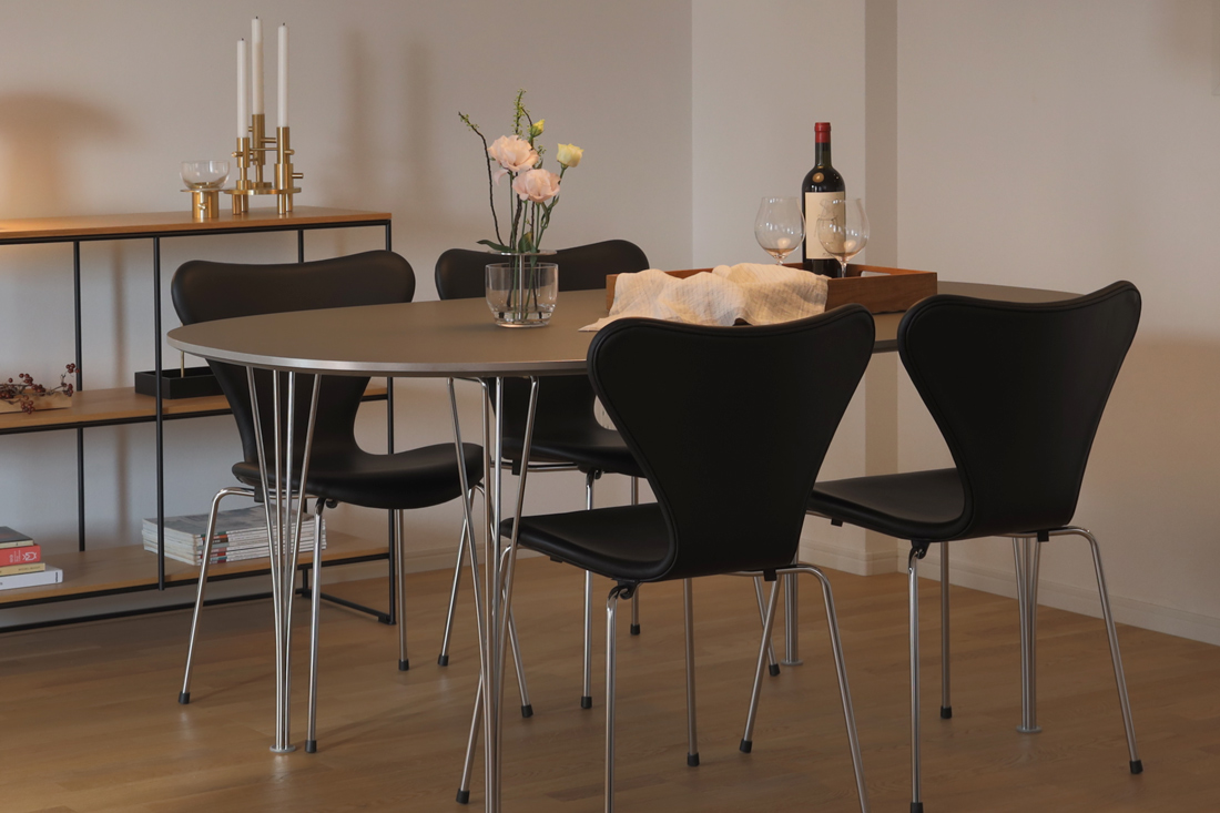 フルパディング仕様のセブンチェアにすることで、よりクッション性が高まり、体に優しくフィットします。長時間座っていても疲れにくく、ラウンジチェアのような快適さを実現しています。