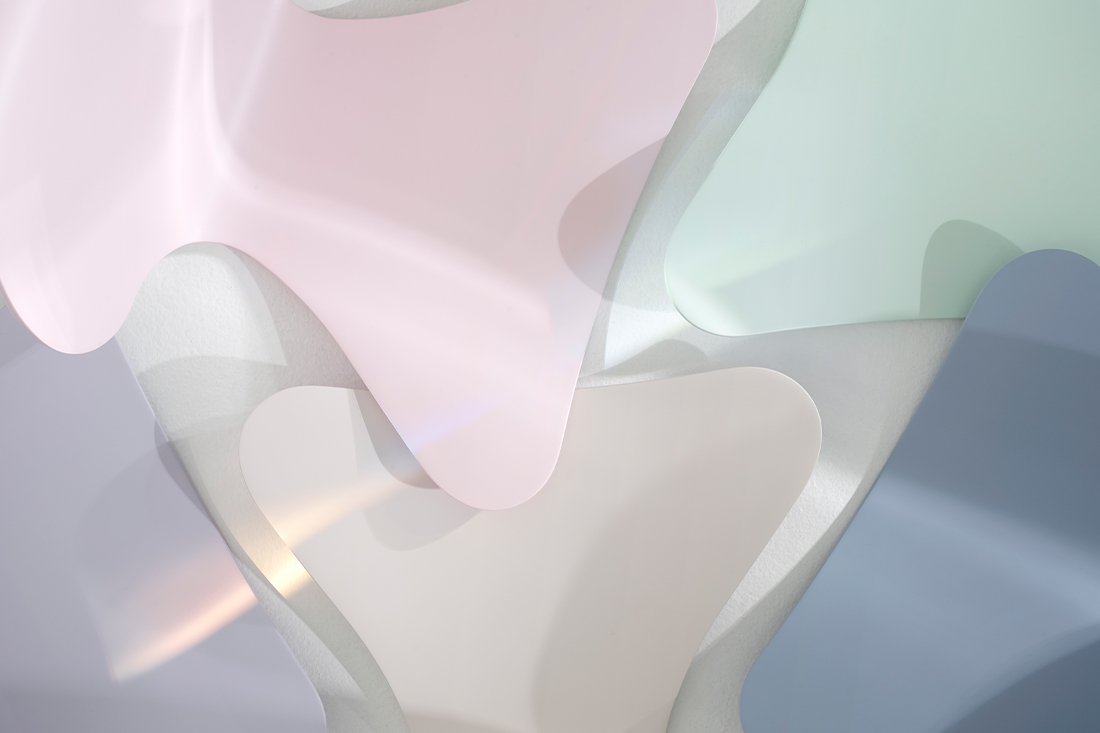 そこから着想を得た5色「グリーン・ベージュ・ピンク・バイオレット・ブルー」。