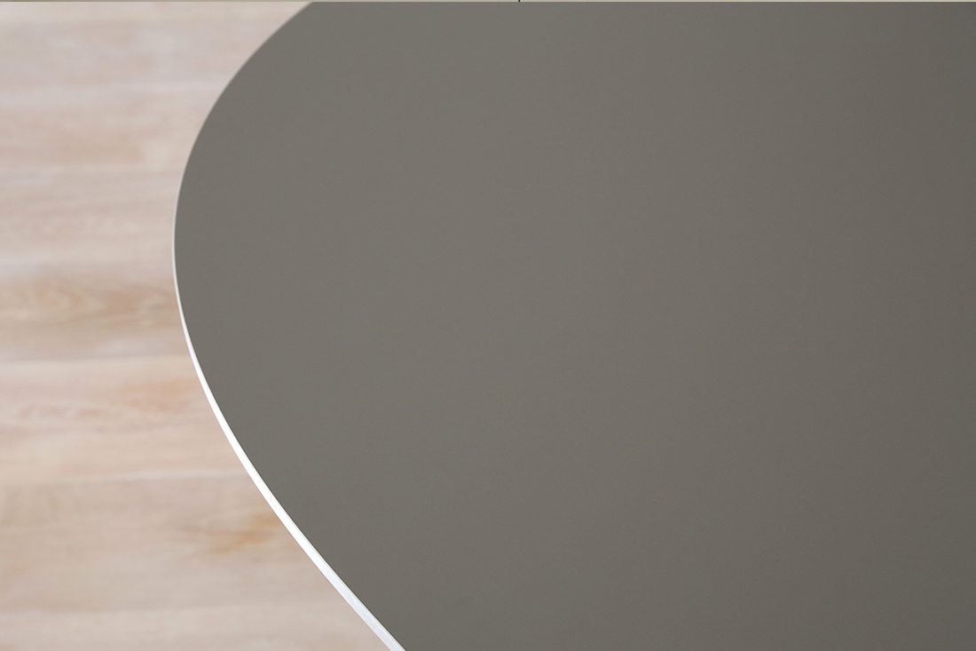 天板のデザインを手がけたのは、デンマークの詩人であり、哲学者・数学者としても活躍したピート・ハイン。感性と合理性を高い次元で併せ持った彼だからこそ、家具デザインにふさわしい「機能美」に富んだ形に行きつくことができたのでしょう。