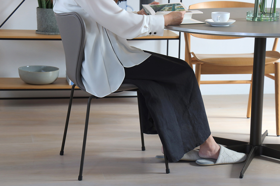 その象徴が「スターベース」と呼ばれる一本脚。ヤコブセンの名作「エッグチェア」や「 スワンチェア」と通じるデザインで、シンプルなのにどこかアートのような佇まいが、空間に静かで美しい存在感をもたらします。
