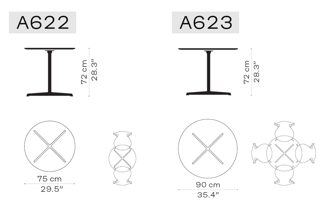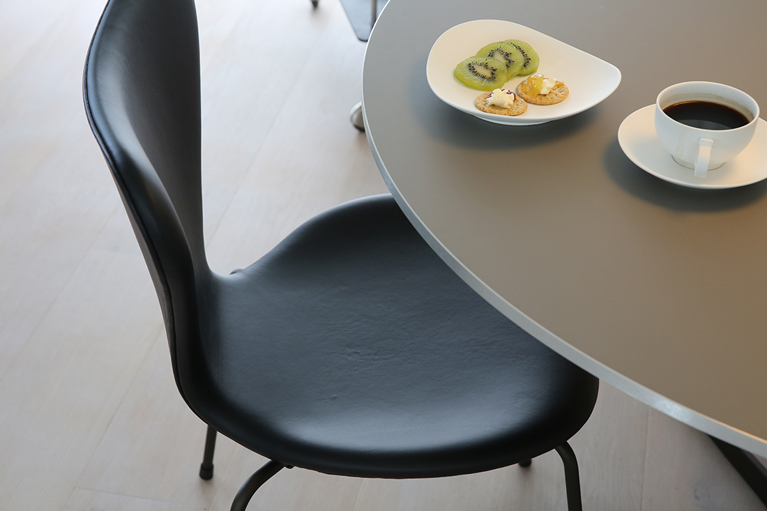 一本脚テーブルの「A603」や「A602」の「A」はアルネ・ヤコブセンの頭文字です。
