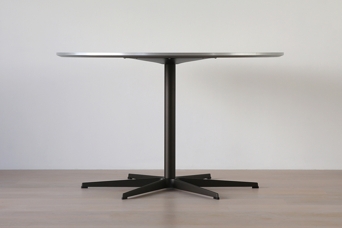 円形・長方形・スーパー円・スーパー楕円といったフォルムの中で、特にヤコブセンらしさが際立つ円形テーブルです。