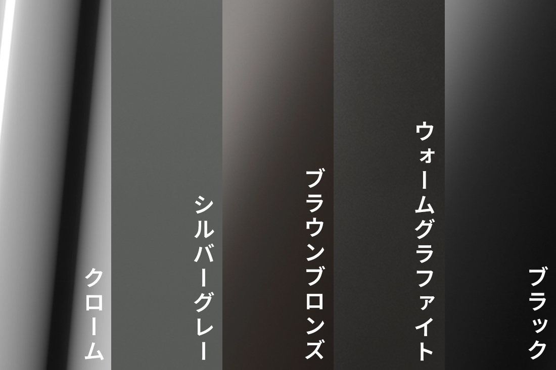 それ以外の4色はマットな塗装を施された仕上げになっており、より落ち着いた印象に。ナチュラルな雰囲気が好きな方や、クロームだとちょっと主張が強いかも、と思った方におすすめです。