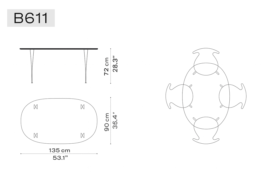 スーパー楕円テーブルの中でも一番コンパクトなサイズのB611。