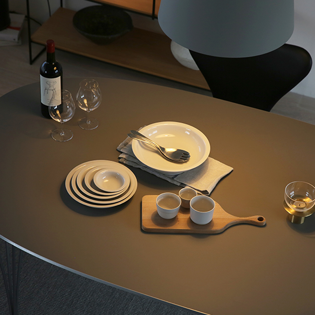 そんな憧れを叶えるのが、FRITZ HANSEN の「スーパー楕円テーブル」です。