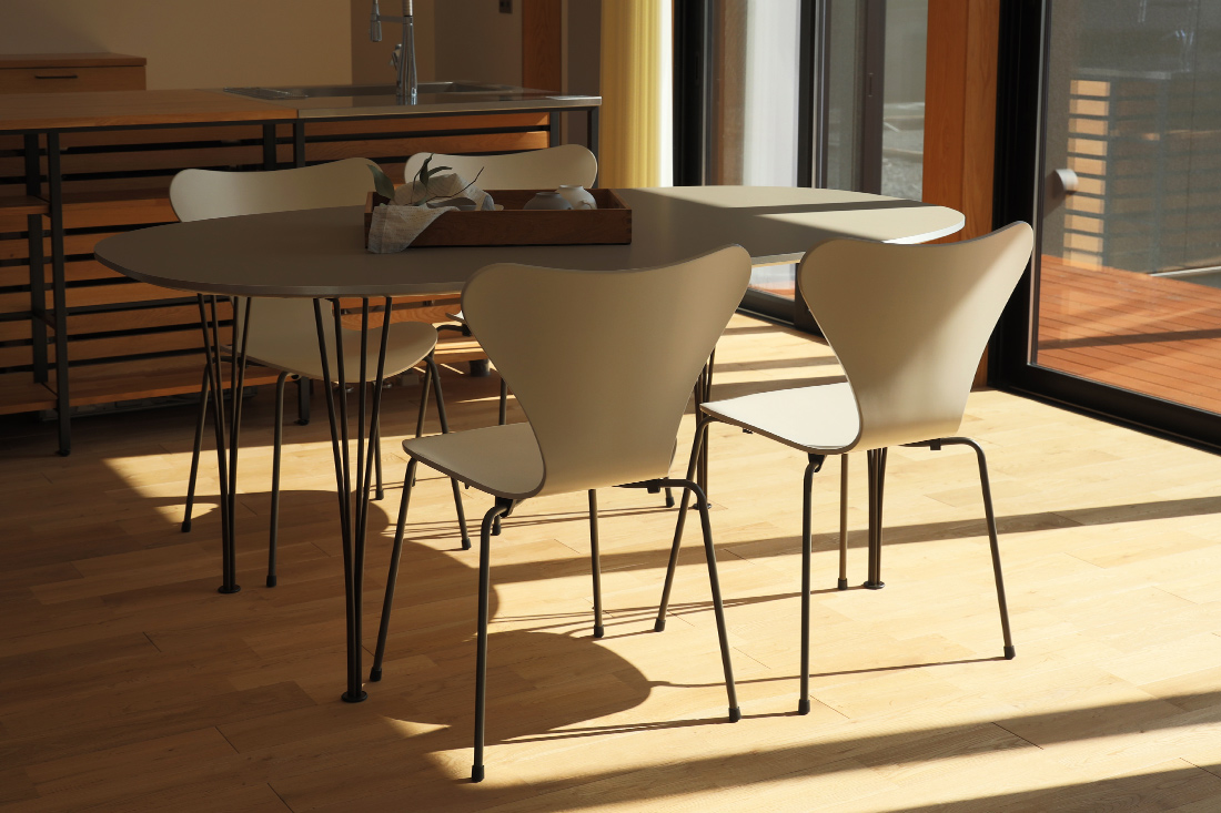 そんな憧れを叶えるのが、FRITZ HANSEN の「スーパー楕円テーブル」です。