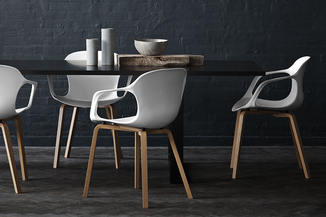 また、短い後ろ脚は動線を邪魔せず、人の集まる場所でもストレスなく使えます。使うたびに、そのしっかりと考え抜かれたかたちのデザインのやさしさに気づくはずです。