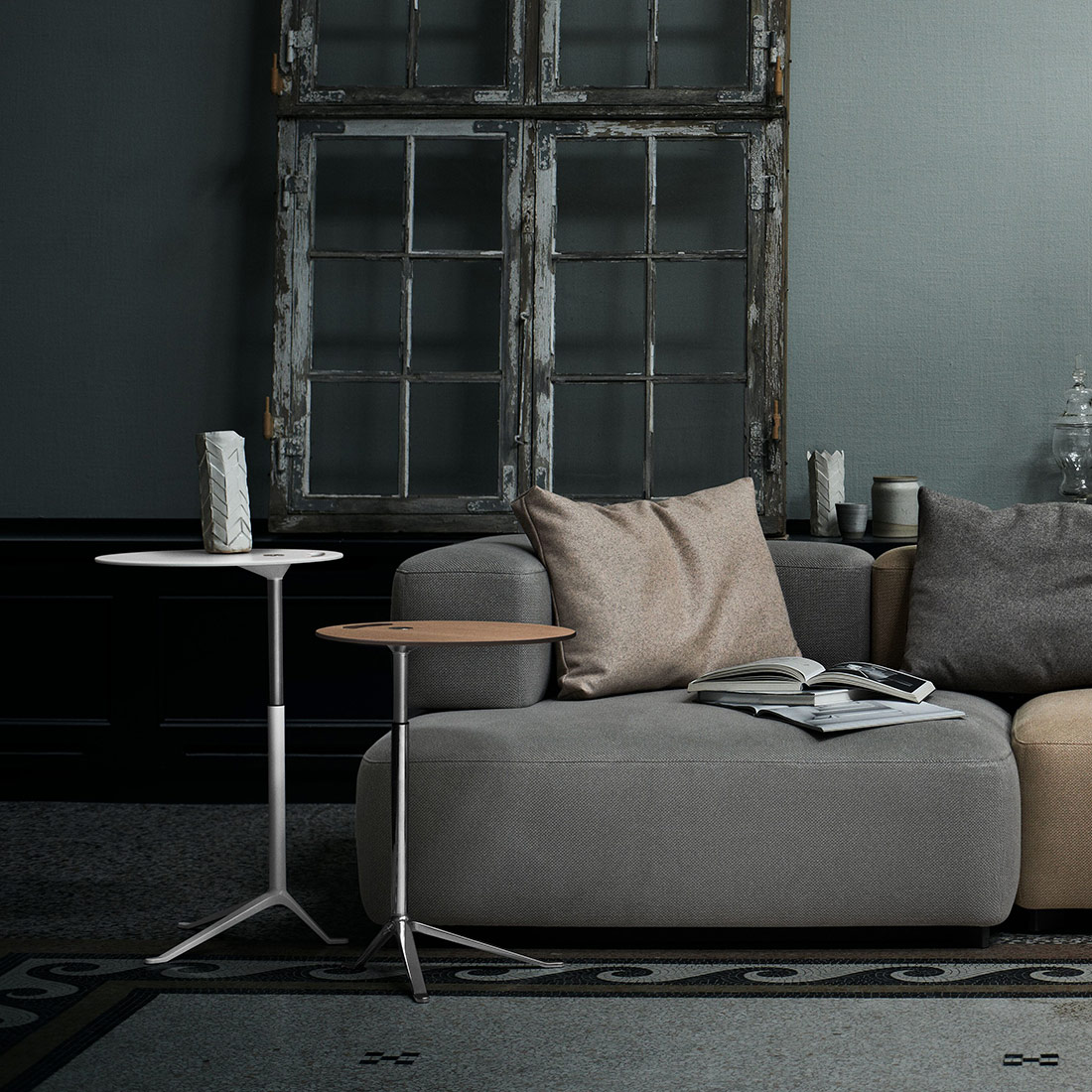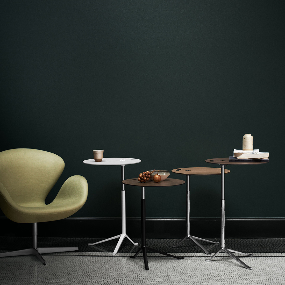 高さの異なるモデルを組み合わせたり、ダイニングテーブルに重ねてネストテーブルのように配置すれば、使い方の幅はさらに広がります。