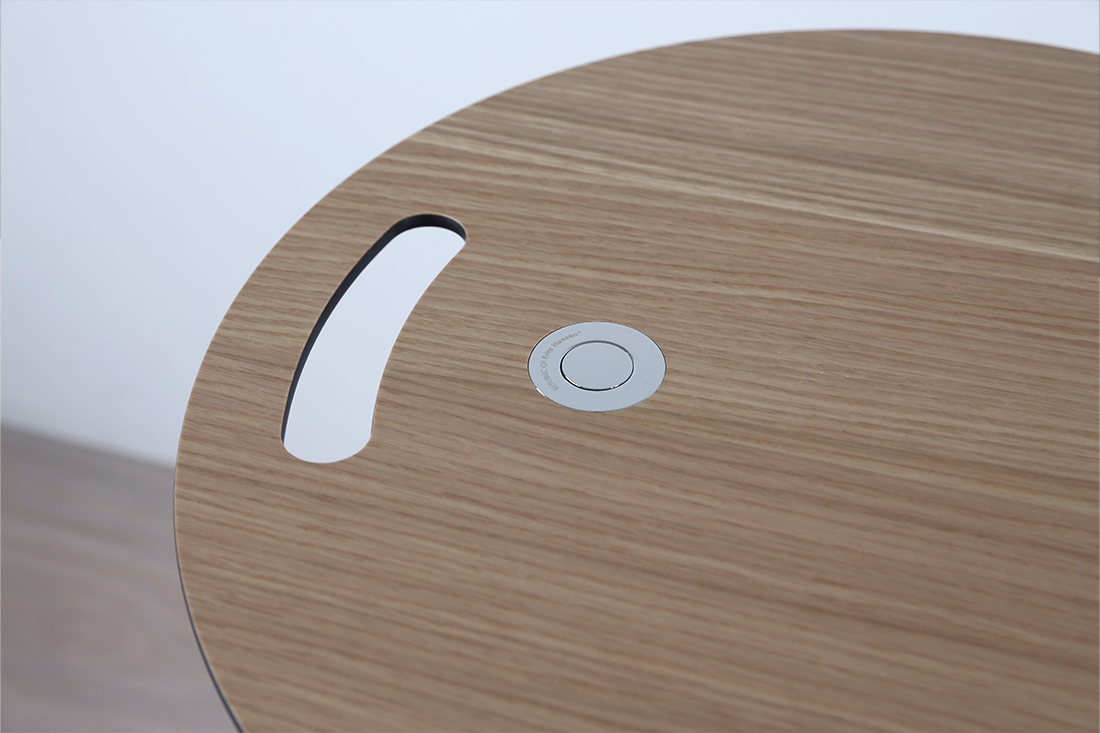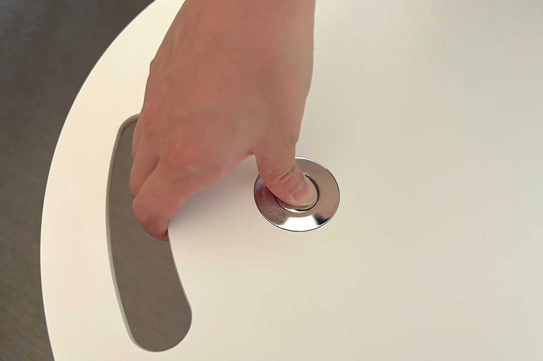 天板のボタンを押すと、高さを変えることができる高さ調節機能付きです。