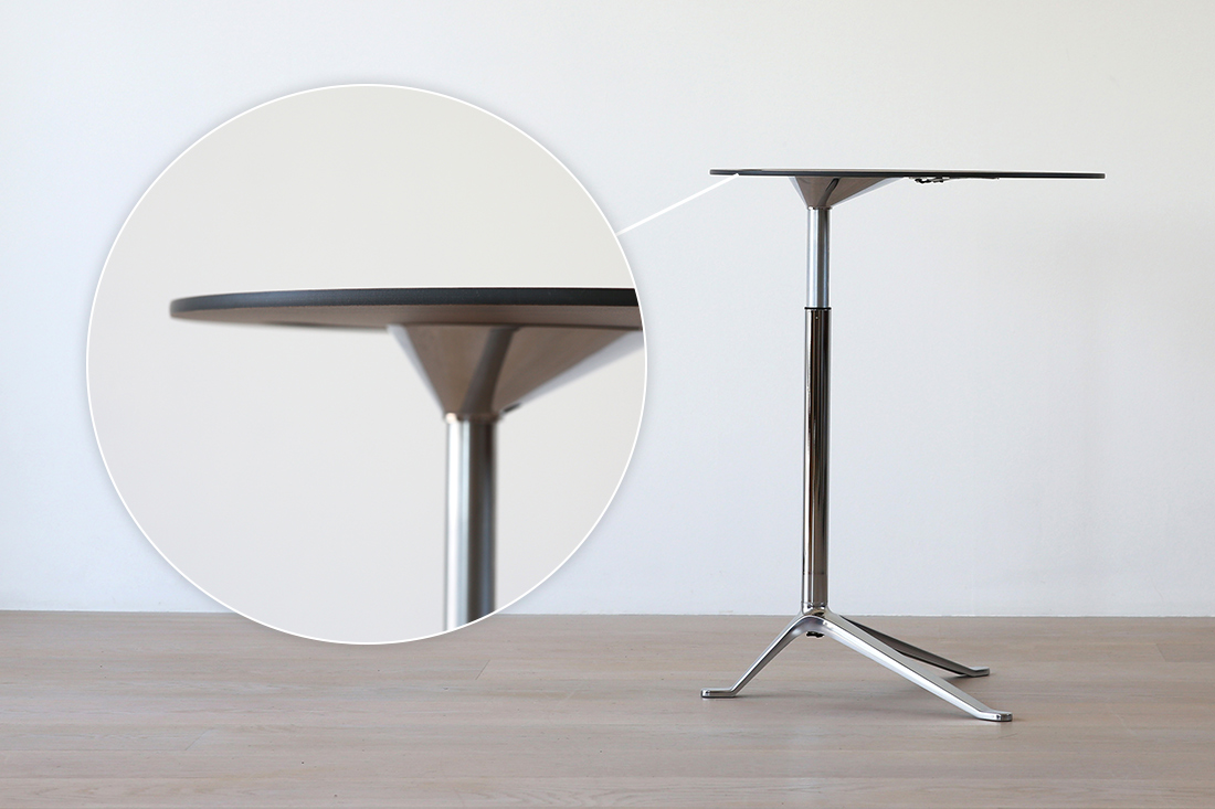 天板を支えるのは、中心からわずかにずれた位置に伸びる一本の支柱。