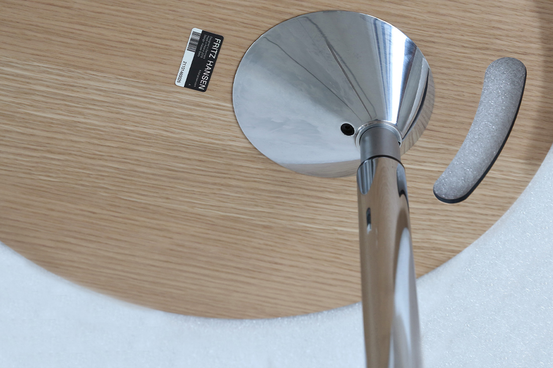 また、天板はわずか約6mmというスリムな厚みに仕上げられており、見た目にも軽やかで、空間に圧迫感を与えません。横から見たときのシャープなラインが、フリッツ・ハンセンらしい洗練さを感じさせてくれます。