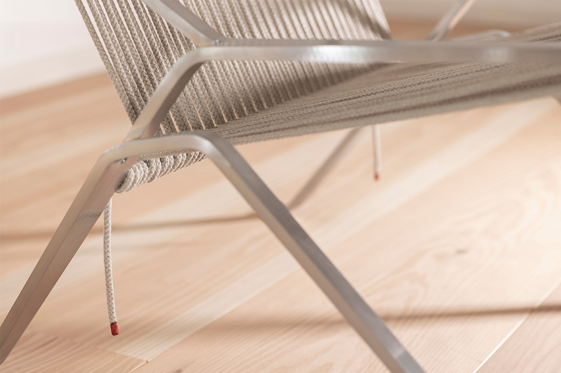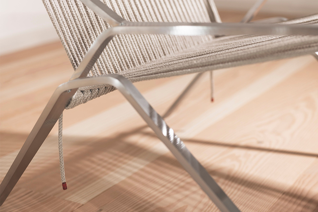 構成する要素は、一枚のスチール板からつくられる継ぎ目のないフレームと、麻ひものロープ。 徹底的にムダをそぎ落としたミニマルな要素で作りあげられていることへの称賛が、「エレメント(要素)」という呼び名にこめられているように思えます。