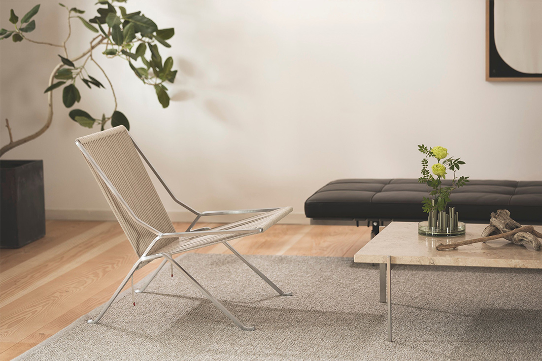 さらにPK25は、座面がロープでできているため抜け感が抜群で、空間にすっきりとした広がりをもたらします。