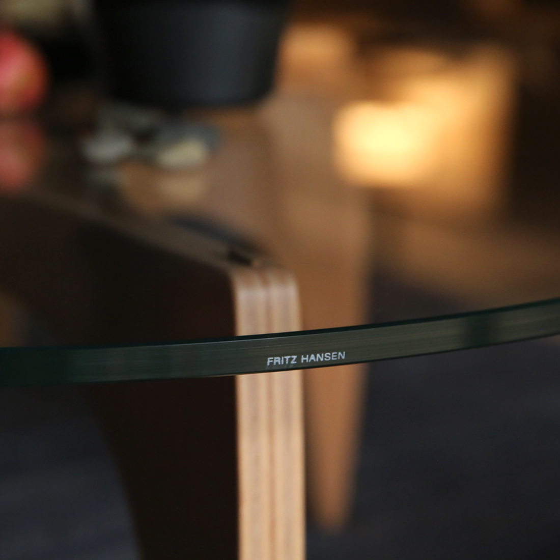 コーヒーテーブルPK60はラウンジチェアPK0と同じく、ポール・ケアホルムがフリッツ・ハンセンに在籍していた頃にデザインされました。しかし、それ以降は販売されなかったため、ファン待望の復刻アイテムです。ガラス天板を支える脚はPK0 Aと同じ成形合板の技術が使われています。PK0 AとPK60の流れるように共鳴しあうデザインは、組み合わせて使うことで空間の余白をさらに美しくさせます。脚の色はPK0 Aと同じくブラックカラードアッシュ・オレゴンパインの2色展開です。ガラス天板のフレーム部分に「FRITZ HANSEN」のロゴが刻印されています。