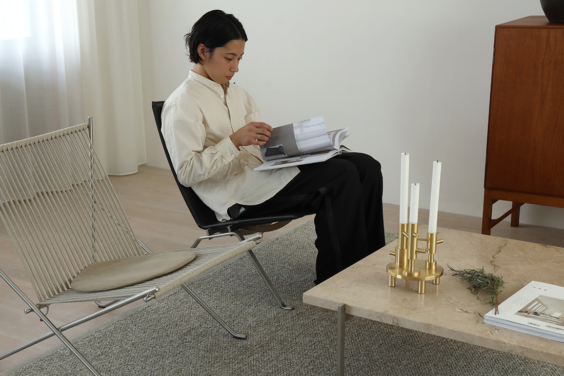 日本古来の住宅は、畳の上で直接座る時間が長く、天井高が低い傾向があります。ケアホルムの作品は、重心が低いことから空間にゆとりが生まれ、日本でも広く愛されています。