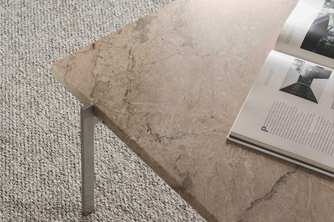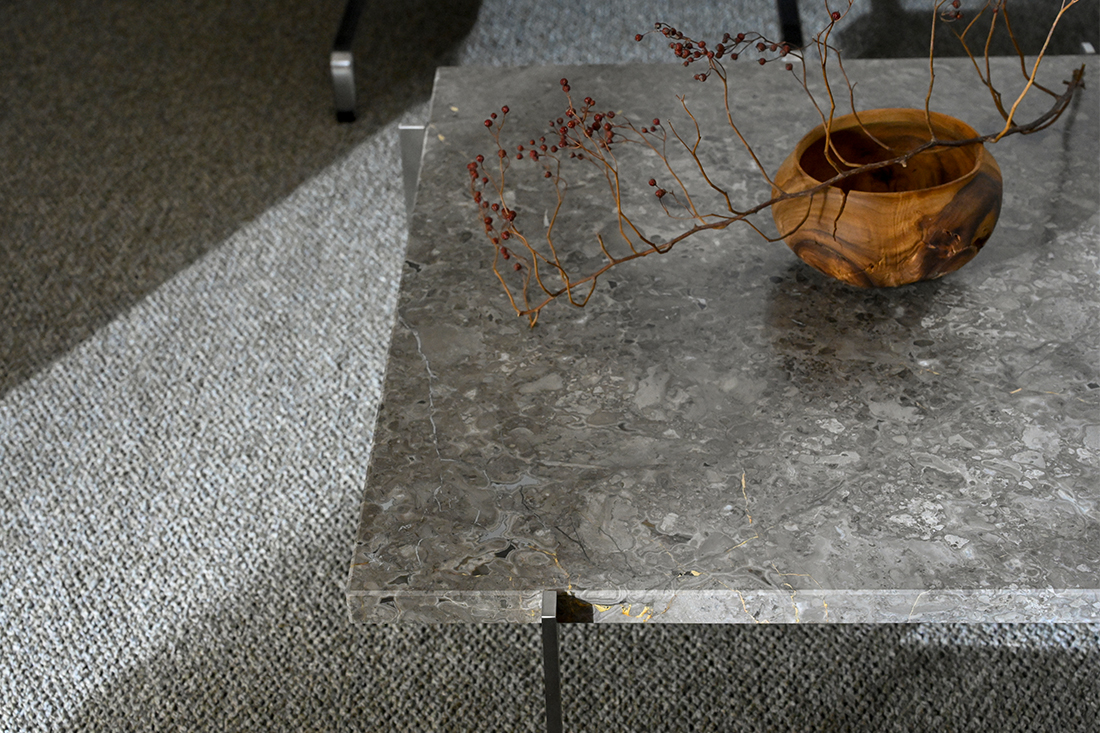 大理石の美しさを最大限に活かす幾何学的デザインの「PK61」。その飾らない佇まいは、集う人の魅力も引き立ててくれます。