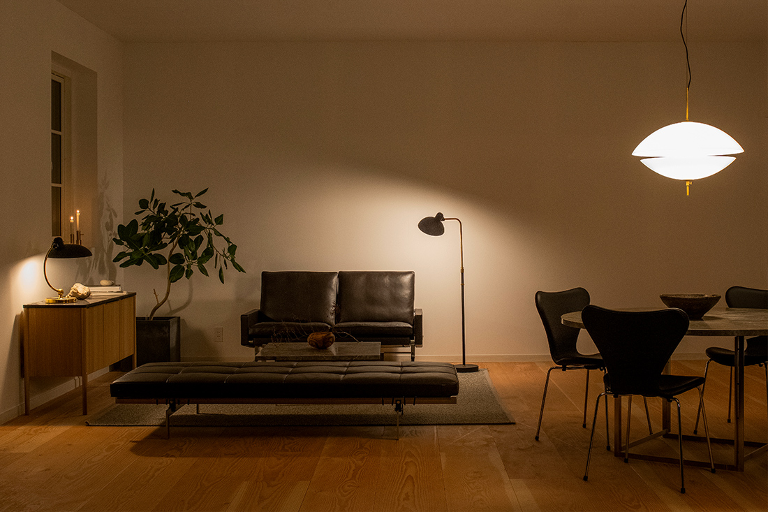 ポール・ケアホルムがこだわったこの「絶妙な重心の低さ」は、空間に余白を生み、広々と奥行きのある印象をお部屋にあたえてくれます。