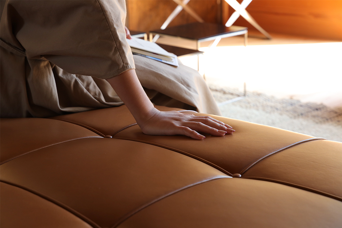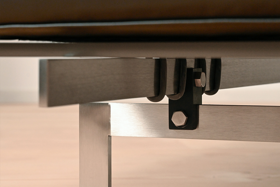 PK80は、レザーマットレス・台座の合板・ステンレスの脚といった数少ない構成要素の組み合わせでできています。これほどシンプルなのに美しいのは、緻密な計算にもとづく設計と厳選された上質な素材だからこそ。
