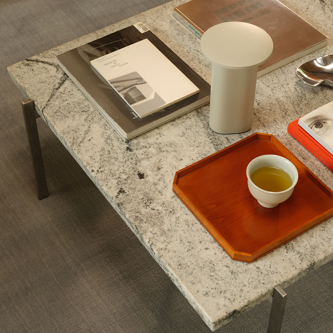 ポール・ケアホルムが1956年に「PK61」を発表した当時、彼が求めていた素材のあり方を色濃く反映しているのが、この御影石です。これまでPK61に使われてきた数ある石材の中でも、発売当時のオリジナルモデルに最も風合いが近い素材として厳選されています。