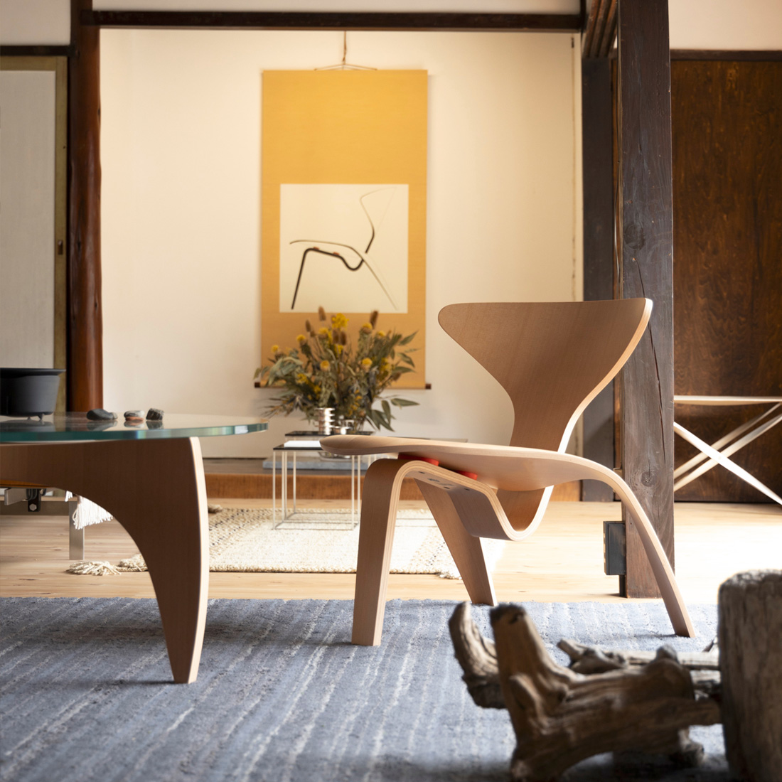 ポール・ケアホルムの制作拠点であった自宅は、親日家のハンナ・ケアホルムが設計しました。随所に日本文化が取り入れられていたので、彼の作品は伝統的な日本の空間とも相性が良いといわれています。日本の数寄屋造りは質素ながら趣のある空間が好まれ、わびさびの美しさを表現しています。ポールの無駄を極限まで取り除く作品への姿勢は、余計な装飾を取り除く日本の美に通じると言えます。