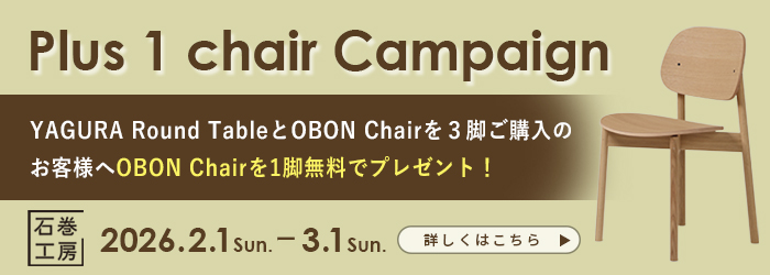 YAGURA Round Table+OBON Chair3脚をご購入で、OBON Chair1脚をプレゼント!