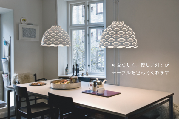 やわらかな優しい灯りと、乙女心をくすぐるかわいいペンダントは、ルイスポールセン、2012年の新作、LCシャッターズ。