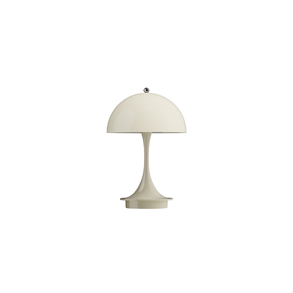 ヴァーナー・パントンのオリジナルモデルを持ち運びできるようにそのまま小型化&充電式にしたもので、シェードの直径はわずか16cm。コンパクトな日本の住まいにぴったりのサイズ感で、あらゆる場所でお使いいただけます。