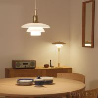 PH 3/2 Tableは「フロアランプを置く場所はないけど、明るさを足したい!」という場合にぴったりです。ソファやイージーチェアの横に置いたり、ダイニングのコーナーに置いたり。壁に反射するように置くとより光が広がって空間が明るくなります。