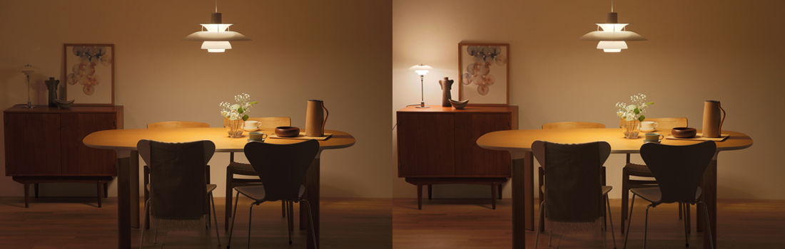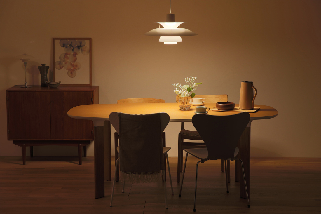 PH 5はダイニングテーブルを低い位置から照らすことを想定してデザインされた照明です。