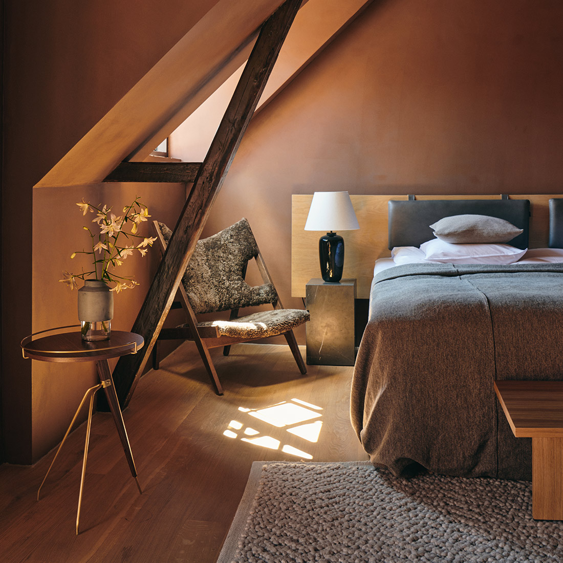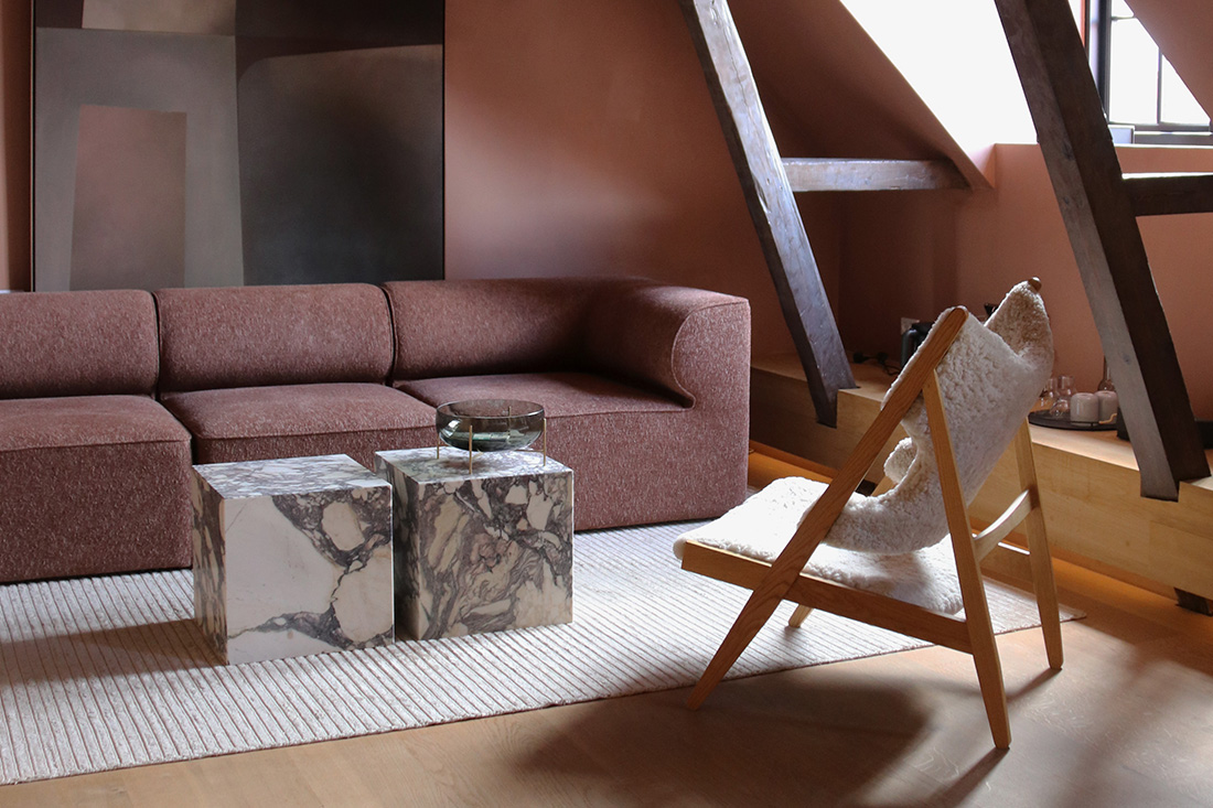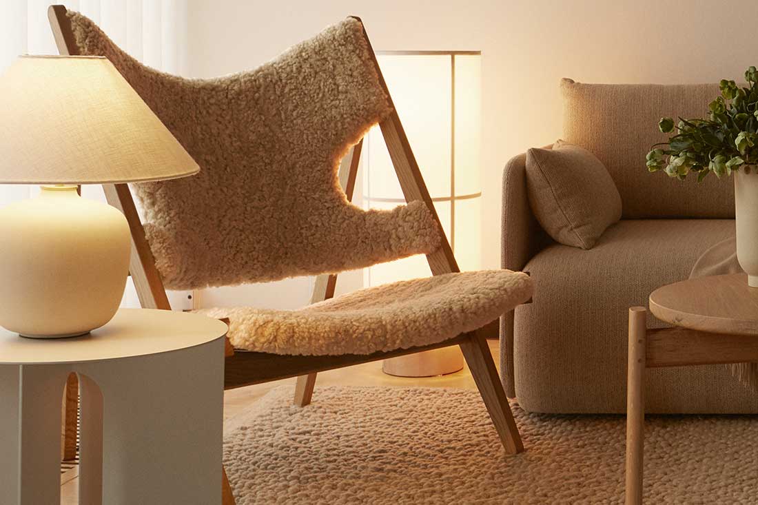 デンマーク・コペンハーゲンのAudoが手がける複合施設「Audo House」では、実際にホテルのラウンジや客室に取り入れられています。ソファと組み合わせて家族との時間に、寝室では読書用のチェアとしても活躍。サイドテーブルや照明を添えることで、よりゆったりとしたくつろぎの時間が生まれます。