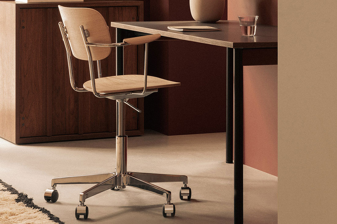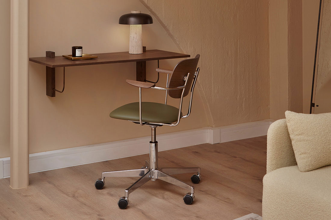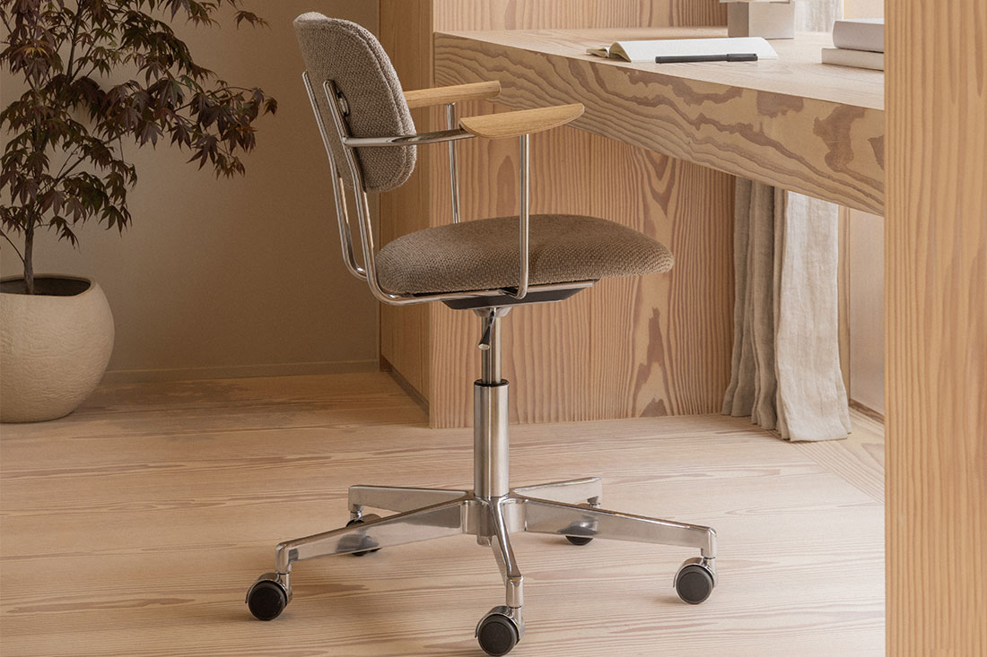 多くのオフィスチェアが持つ「機械っぽさ」。このチェアは、ノーム・アーキテクツが大切にする「引き算の美学」により、重たさを感じさせない、軽やかなデザイン。ほどよい丸みのあるフォルムは、リビングや寝室に置いても違和感のない、家具としての温かみを持っています。