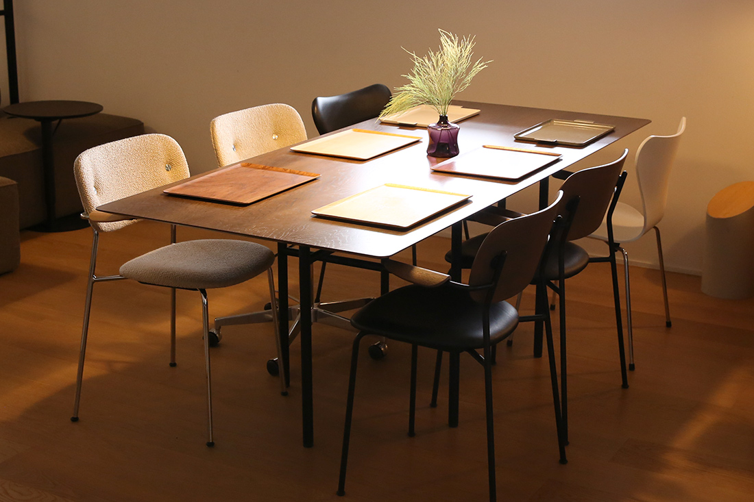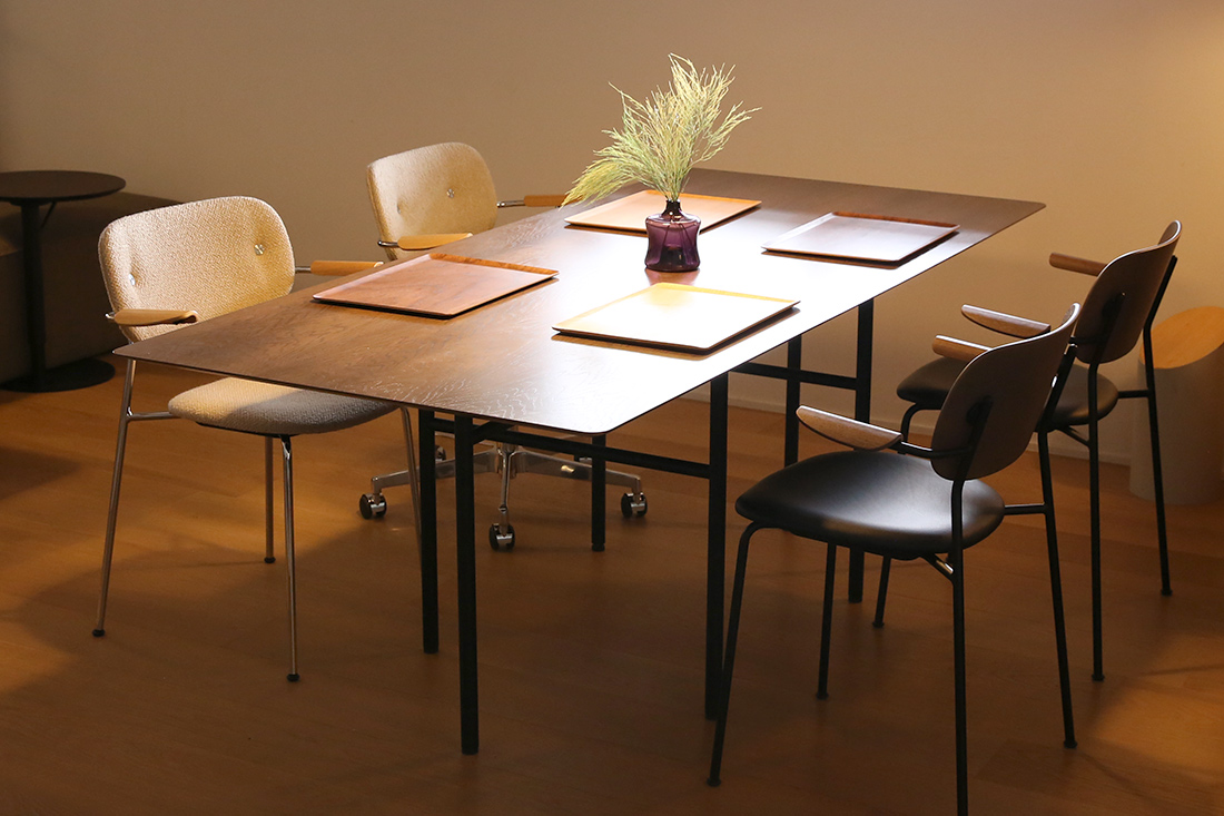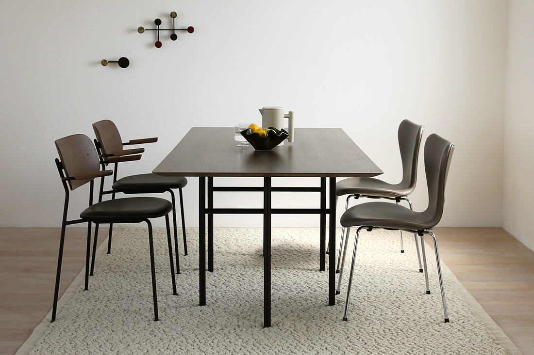 Norm Architectsは、北欧デザインの伝統を受け継ぎながら、暮らしに自然となじむ、落ち着いた佇まいのものづくりを大切にしています。このテーブルも、限られた空間でも無理なく使え、素材の魅力を活かした仕上がり。自然と人が集まるあたたかな“居場所”をつくり出します。