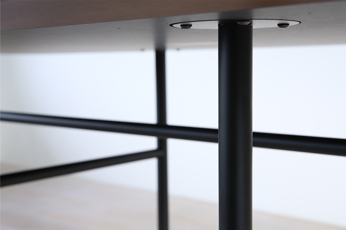 ベースは、パウダーコーティングを施したスチール製。マットな質感が上品さを引き立て、繊細でスリムな印象と耐久性を両立した、バランスのとれた設計です。高い強度も備え、ワークスペースとしても安心してお使いいただけます。