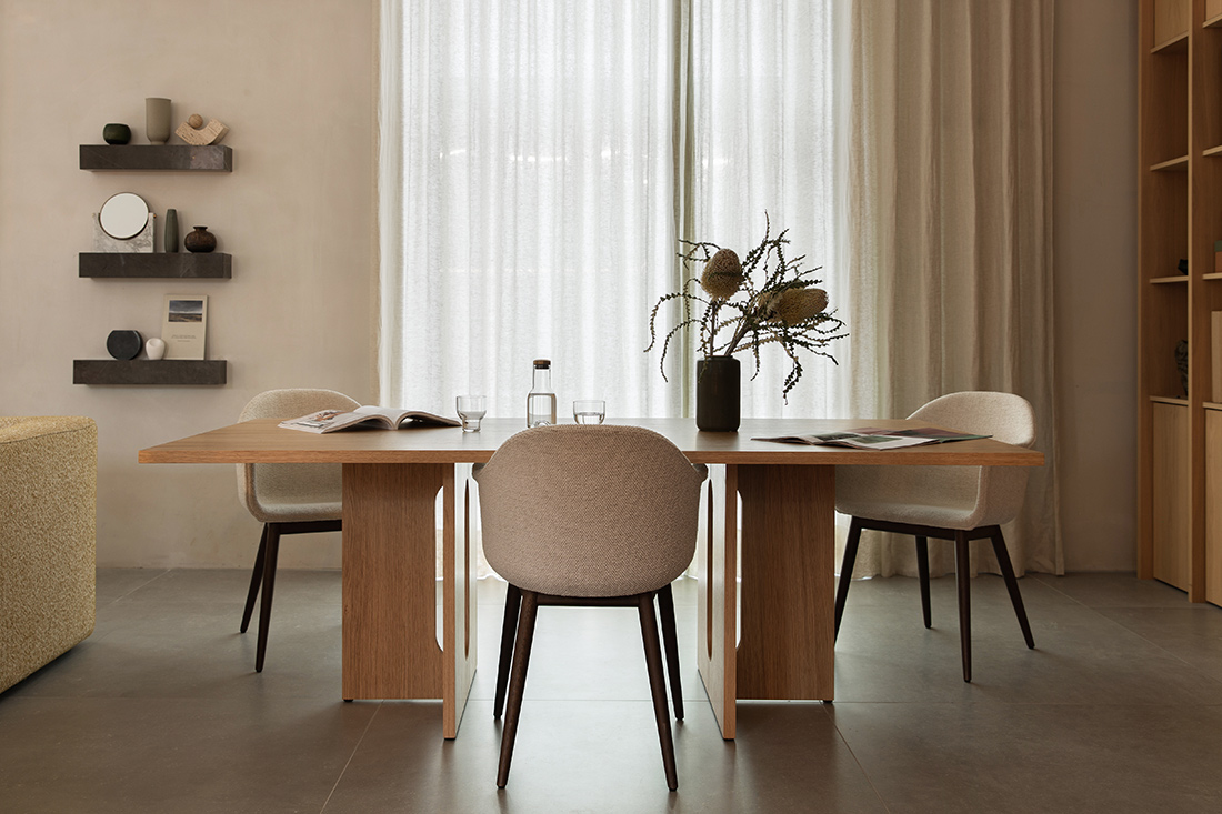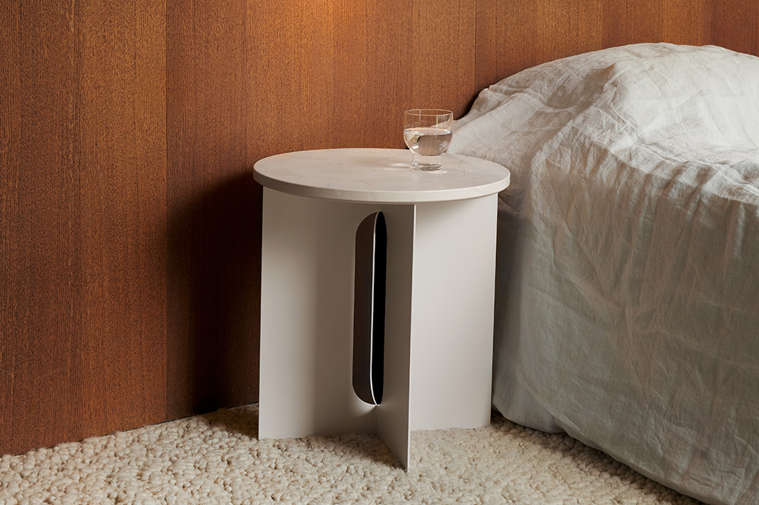 Audoの旧ショールームに併設されたカフェのために誕生したこのコレクションは、汎用性の高いモダンなサイドテーブルから始まりました。ギリシャ神話に着想を得たデザインは、男性的な強さと女性的な柔らかさの両方を備え、どちらにも偏らない“アンドロジーン”な美しさを体現しています。現在では、天然素材や多様な用途を取り入れながら、ダイニングやラウンジにも広がる豊かなシリーズへと進化しています。