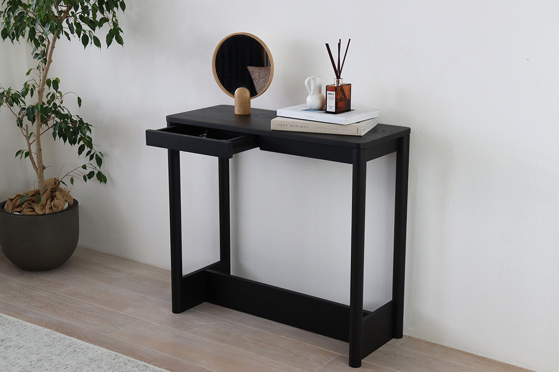 ARIAKEのコンソールテーブルは、静かな自信と優雅さをそなえた、洗練された空間の象徴です。無駄のないシンプルなデザインが、空間に軽やかさと開放感を与え、厳選された素材が、心に穏やかな安らぎをもたらします。