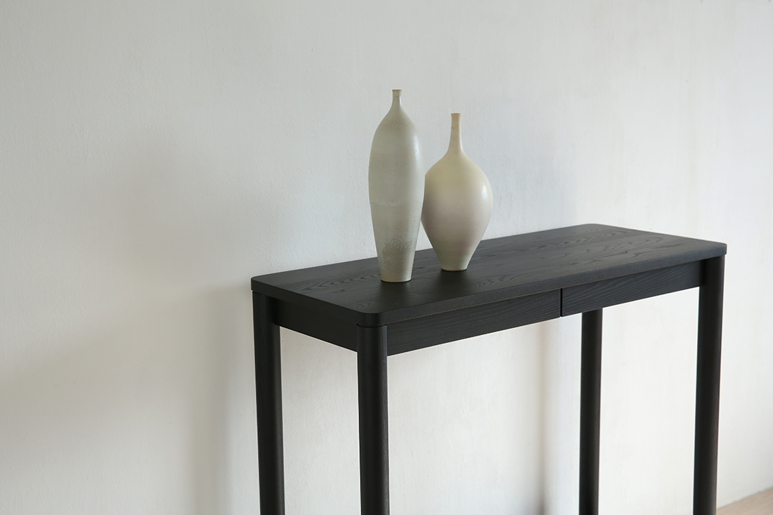 木肌の温もりが生み出す自然な質感と、洗練されたフォルムが絶妙に調和し、伝統と現代性が融合した美しさを感じさせます。熟練の技が光る細部のディテールは、空間全体を静かに引き立てるような存在感を放ちます。ARIAKEのコンソールテーブルは、そこにあるだけで洗練とエレガンスを空間に加え、控えめながらも印象深い佇まいで、日常にさりげない彩りを添えます。