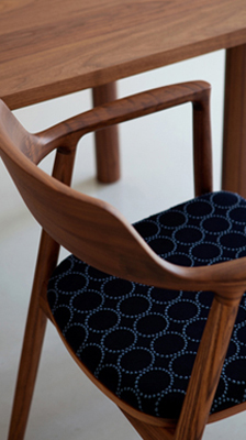 そんなイメージを大きく覆してしまう、全く新しいインテリアファブリックが ファッションブランドmina perhonenより誕生し、 マルニ木工が展開する MARUNI COLLECTION の家具の張地として新しく仲間入りしました。