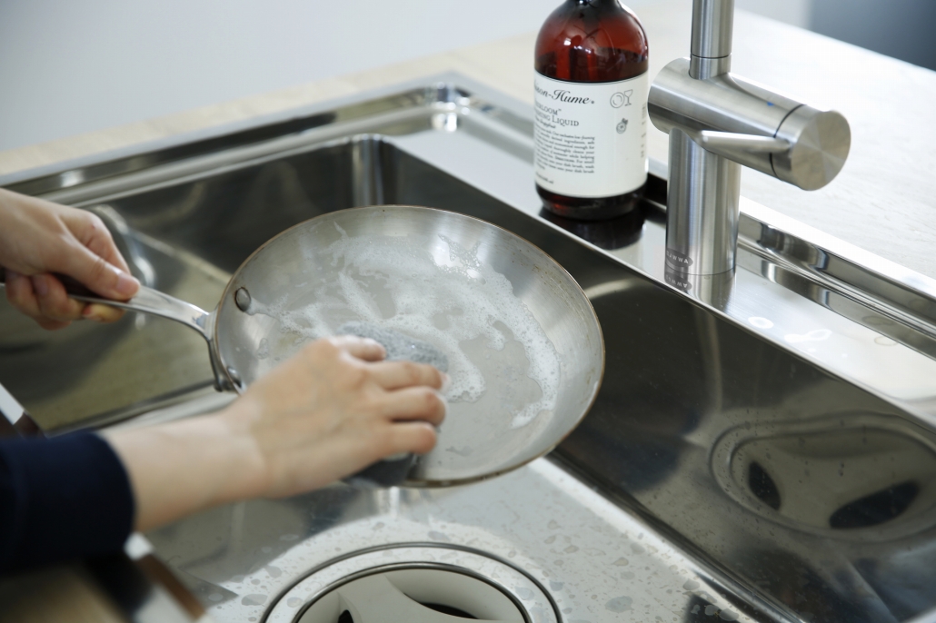 油汚れをスッキリと落としながら、手肌を優しくいたわってくれるので