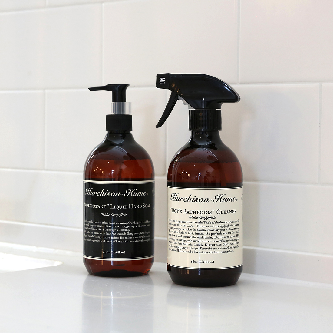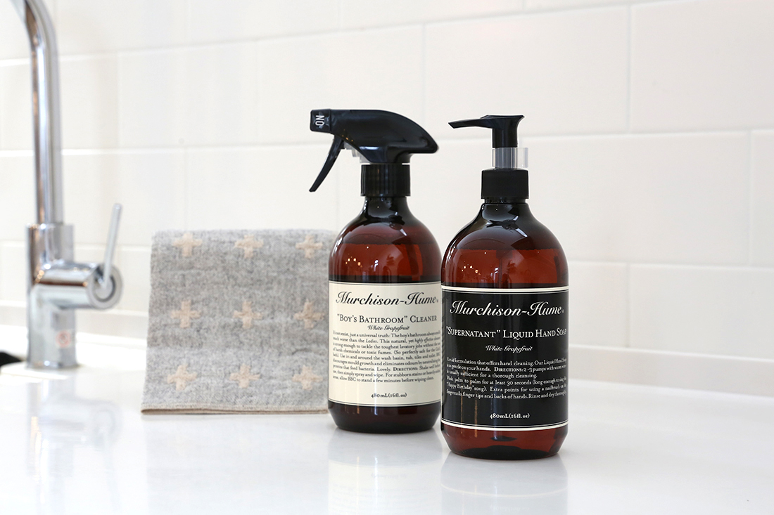 植物由来の原料にこだわっており、大切な手肌を守りつつ、しっかりと洗浄ができるハンドソープ「"スーパーネイティント"リキッド ハンドソープ」。子供でも安心して使える、洗面台周りやトイレやバスタブにも最適な「“ボーイズ・バスルーム”クリーナ」。そして今治のタオルメーカーで作られている上質なリネン、パイル部分にはオーガニックコットンを100%使用するゲストタオルを加えた、ラバトリーセット。