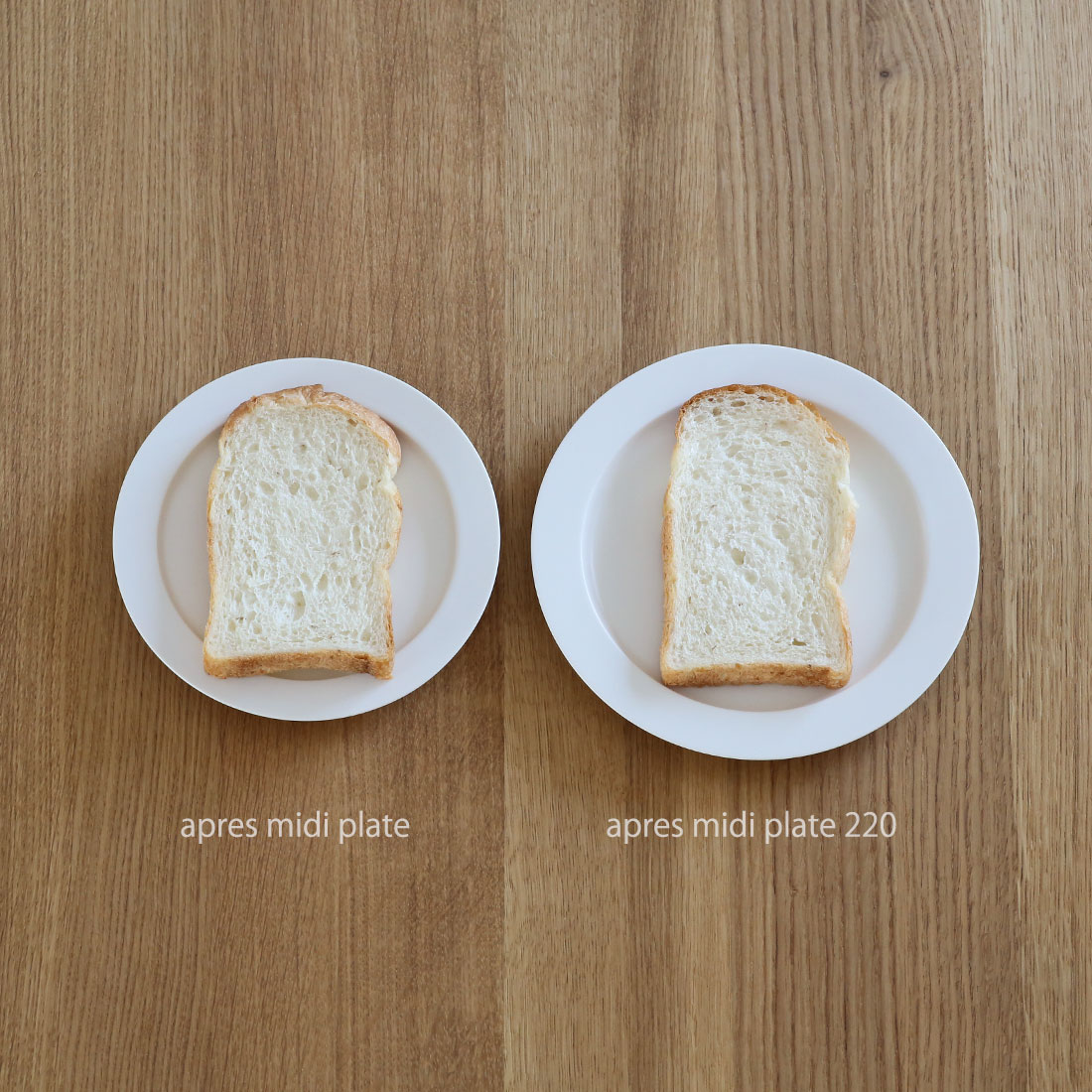unjourシリーズのapres midi plateより少しだけ大きいサイズです。 山型食パンを乗せるのに、またケーキなどを余白を持って乗せられます。