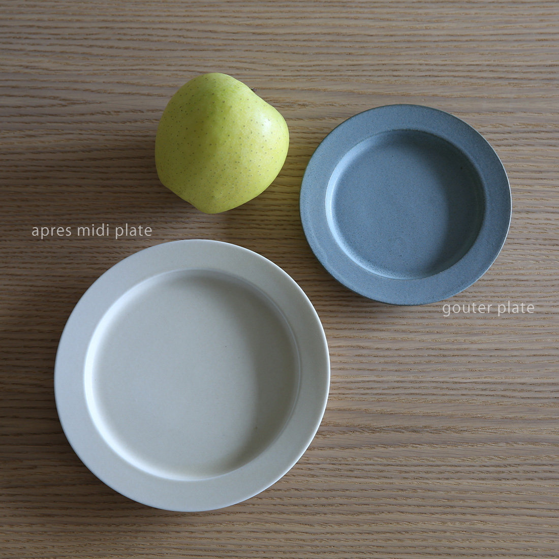 大きいサイズからmatin plate(マタン プレート)、apres midi plate 220(アプレミディ プレート 220)、apres midi plate(アプレミディ プレート)、gouter plate(グテ プレート)、nuit plate(ヌイ プレート)の5サイズ展開です。