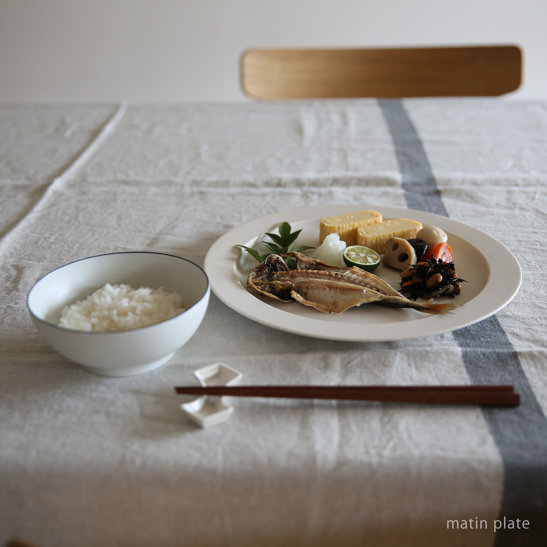 一見、洋食向きの食器に見えますが、和食にもとても合わせやすいunjour(アンジュール)のプレート。日々の生活の中で欠かせない存在になりそうです。
