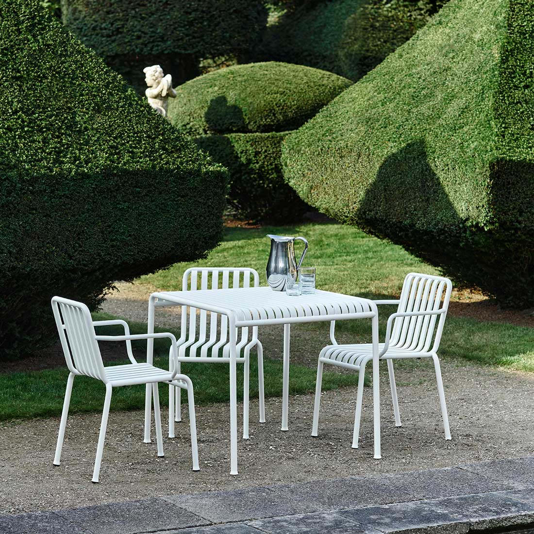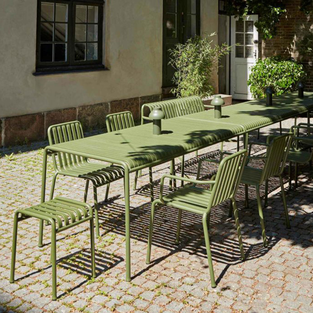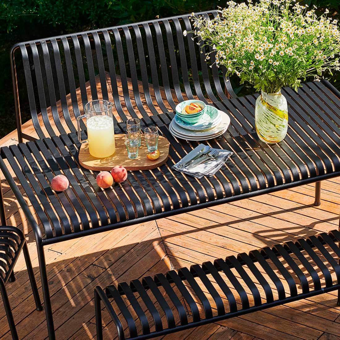 HAYのPALISSADEシリーズは、フランスのブルレック兄弟によるデザインで、「シンプル・機能性・適応性」という哲学が反映された屋外家具コレクションです。無駄を削ぎ落としたシンプルなフォルムは、洗練されたエレガントな雰囲気を醸し出します。