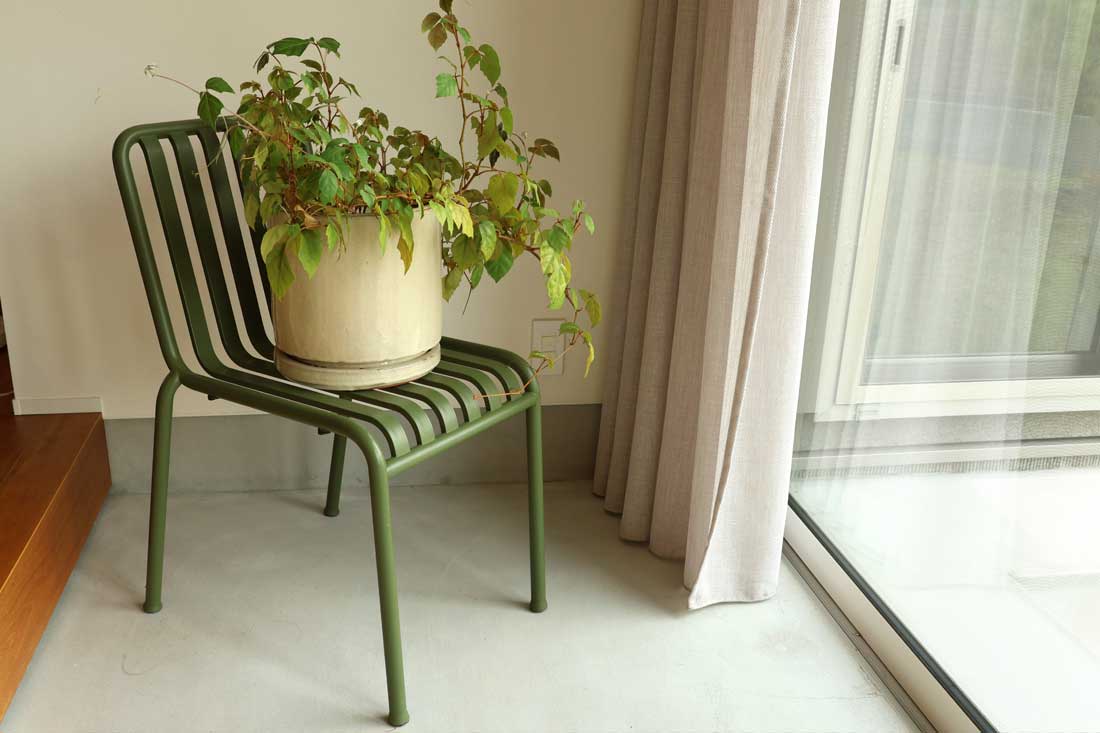 無駄を削ぎ落とした直線的なフォルムは、チェア1脚だけでも絵になります。