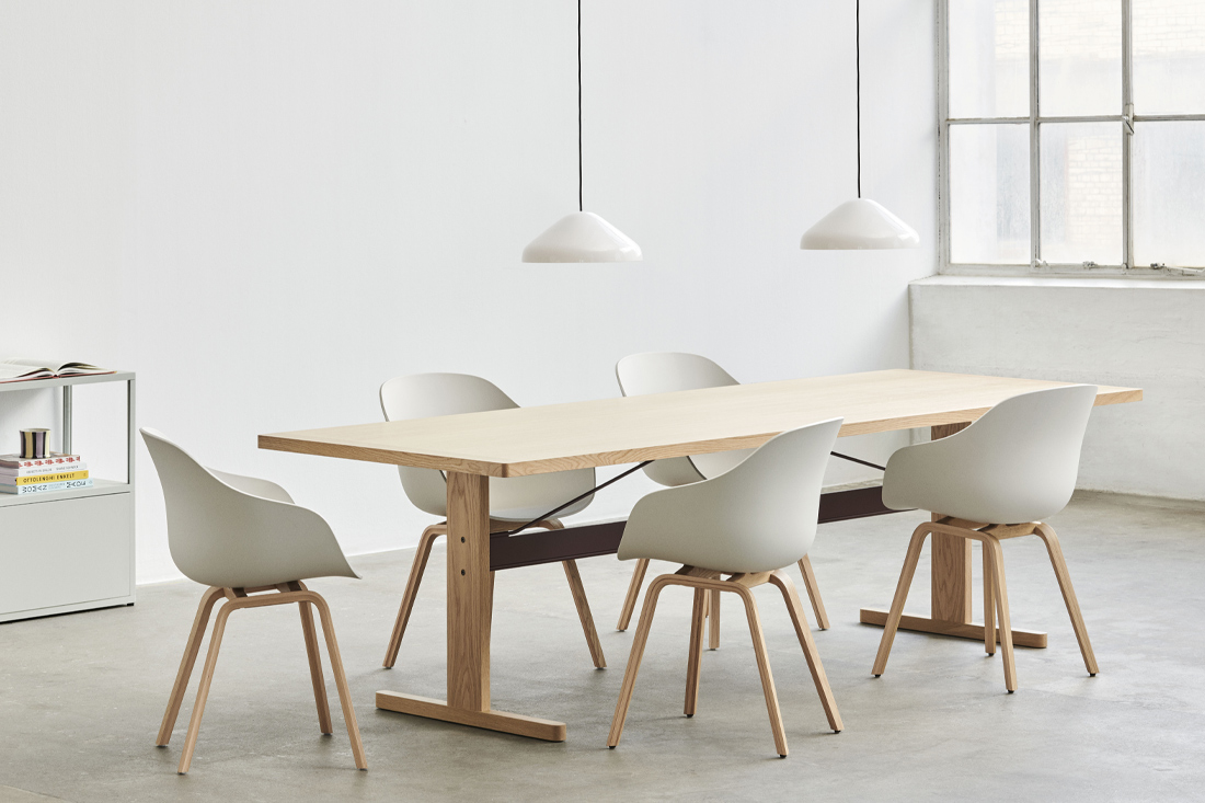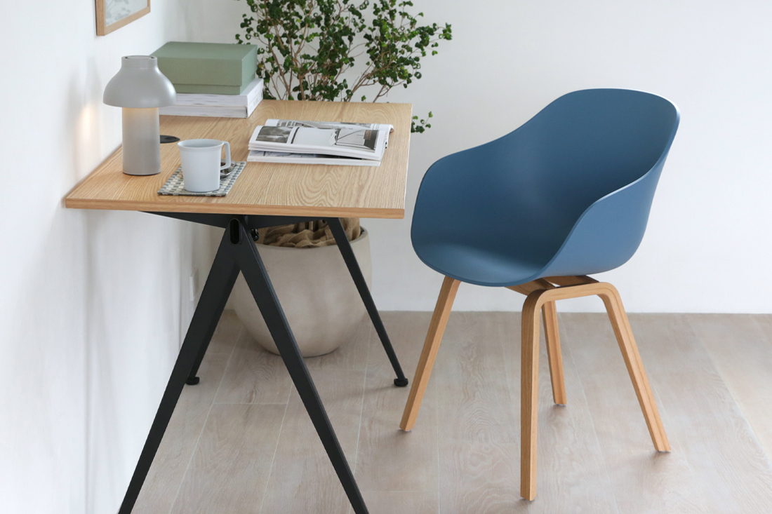 デンマークの家具デザイナーHee Welling(ヒー・ウェリング)デザインのABOUT A CHAIR(アバウト ア チェア)。「AAC222」は、背もたれを高めにした丸みのあるシェルが特徴のモデルです。低くなったアームレストにより座りやすくなっただけでなく、テーブルの下に深く収めることが可能になりました。