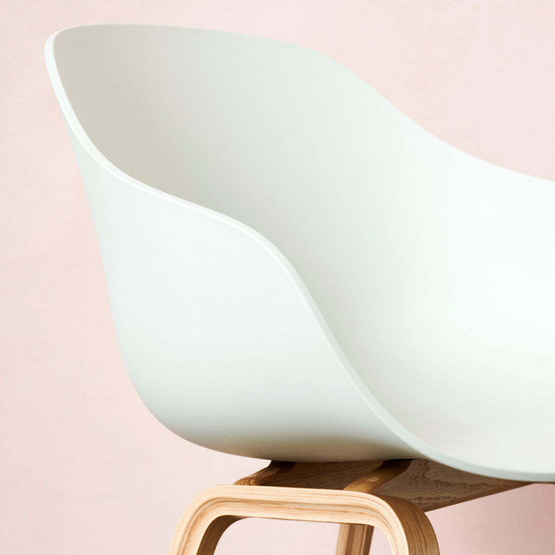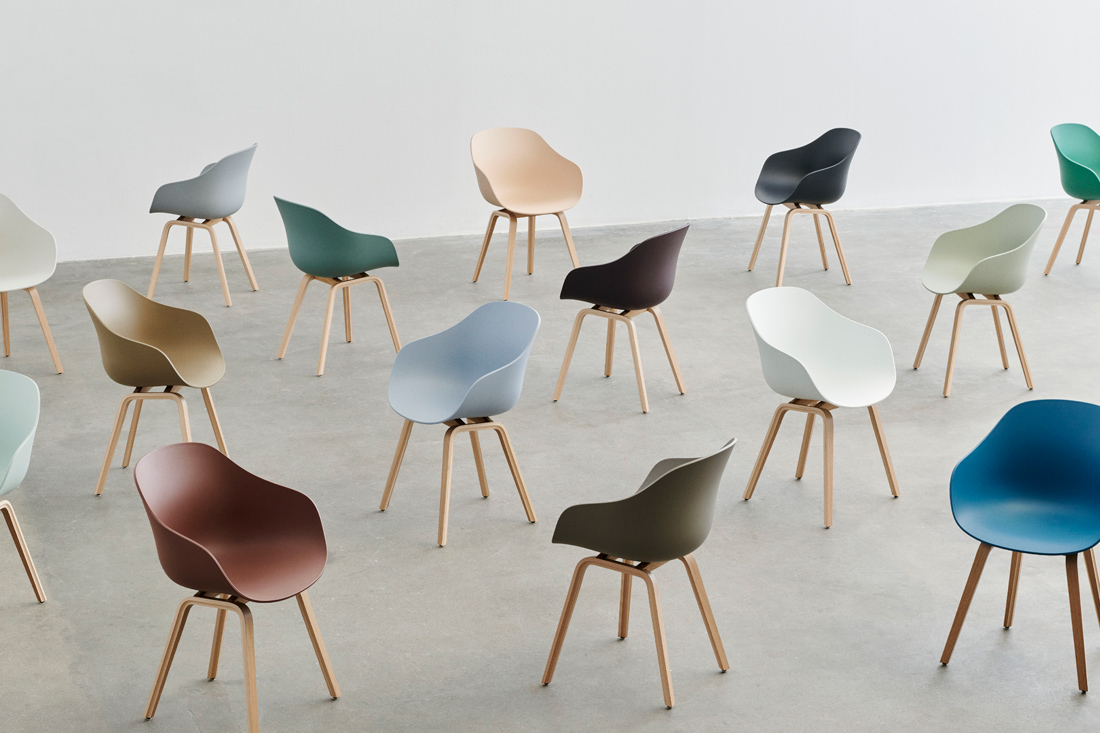 「About A Chair(AAC)」シリーズは、彼とHAYの共同製作により誕生しました。今回のAAC222においても、「椅子は空間を邪魔せず、それでいて座る人を優しく包み込む存在であるべき」という彼の思想が、独自の3Dカーブや低いアームの設計に色濃く反映されています。