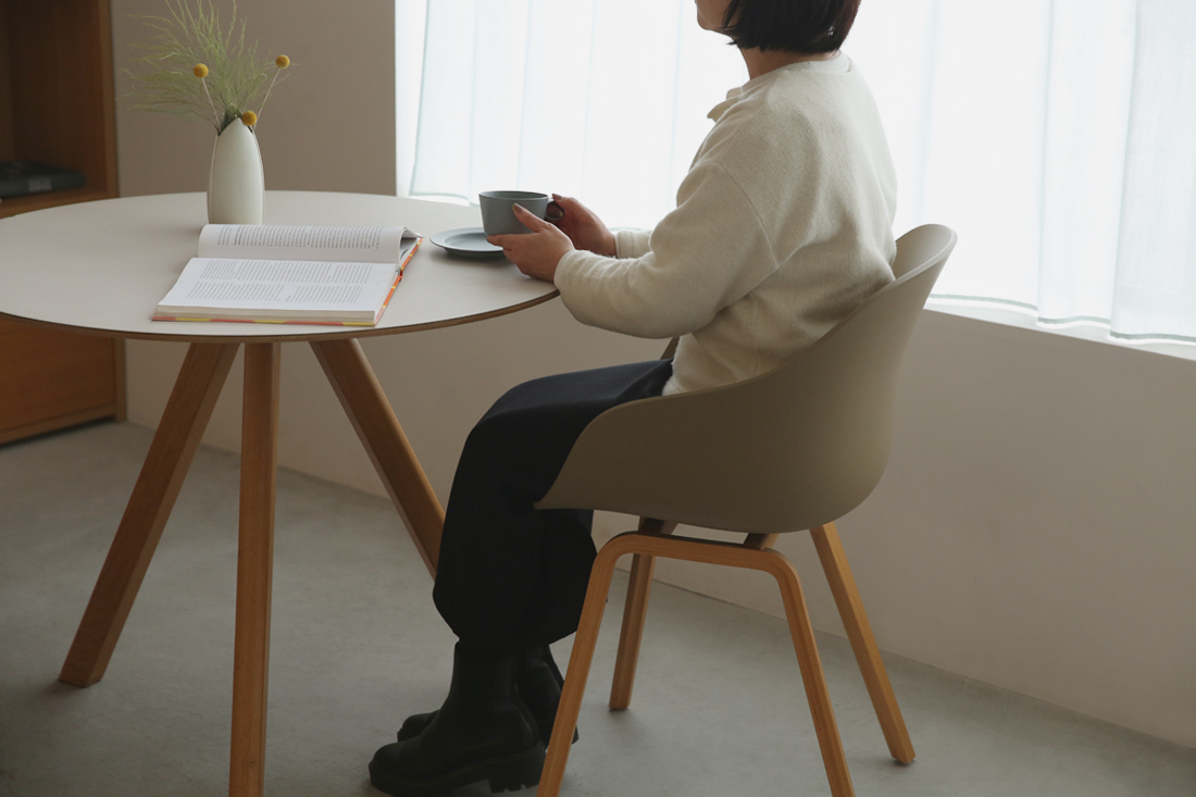 食事を終えたあとも、ついそのまま座って本を読み進めてしまう。身体にピタッと寄り添うこのカーブが、あなたの毎日の力みを少しだけ解いてくれるはずです。明日からの朝食やデスクワークが、今より少しだけ穏やかな時間になる。そんな新しい日常を、この椅子と一緒に迎えてみませんか。
